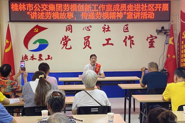 为大力弘扬劳模精神、劳动精神、工匠精神,近期,桂林公交劳模创新工作室成员受邀走进象山区同心社区开展“讲述劳模故事,传递劳模精神”宣讲活动。活动中,劳模创新工作室成员夏四初、胡天顺、莫伟平用质...