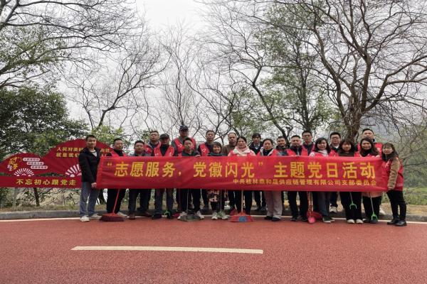 3月3日,供应链公司党支部组织全体党员及公司员工前往桂林市秀峰区桃花江绿道开展“志愿服务·党徽闪光” 学雷锋主题党日活动。活动当天,党员志愿者身穿志愿者马甲,拿起夹子、笤帚等工具对桃花江绿道进...