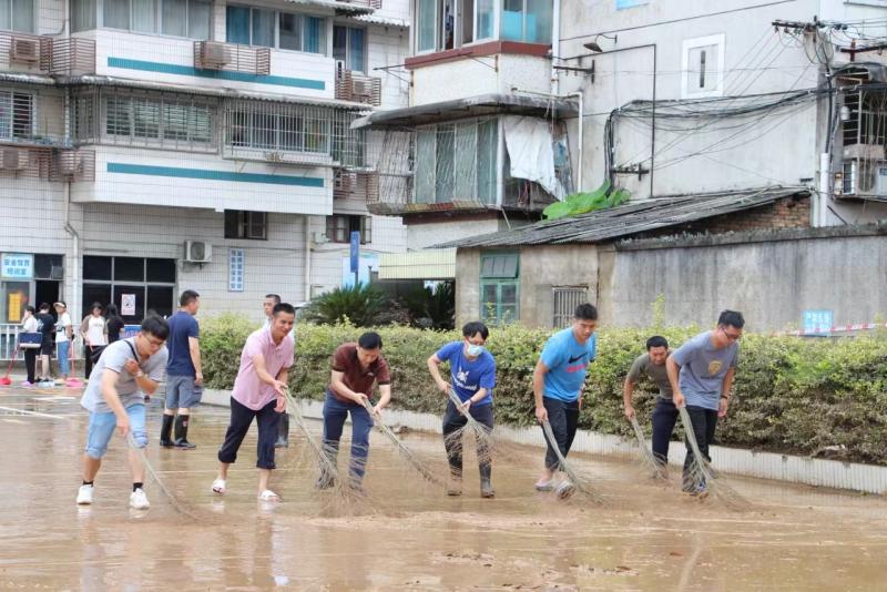 随着洪水逐渐退去,鼎捷资产公司灾后重建工作紧张有序进行,并着手开展灾后清理消杀工作。6月23日,鼎捷资产公司组织党员及志愿者帮助花鸟市场开展垃圾清理工作,尽快恢复生产生活秩序,减少洪涝灾害带来的损失。当天,烈日当空,垃圾在太阳下发出阵阵恶臭,容易滋生病菌。鼎捷资产公司党员及志愿者们利用铁锹、扫把、徒手搬运等劳动清洁方式,将一条条通道上的垃圾进行清理、疏通。在大家的努力下,以最快时间恢复了市场原貌,助力市场秩序恢复正常。