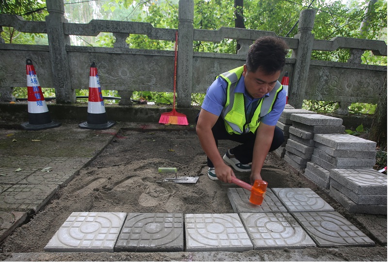 “哒、嗒、嗒”声此起彼伏,参赛选手的指尖快速敲击键盘,电脑屏幕上,那些素未谋面的车辆信息,仿佛已在选手脑海中过了千万遍,一张张收费票据被快速打印出来。在街砖铺砌现场,参赛选手熟练地操作起来:整理场地、拌水泥沙浆、找平……“咚咚咚”橡皮锤敲击着砖面,再用细砂灌缝,一条平坦的街道就展现在大家面前。