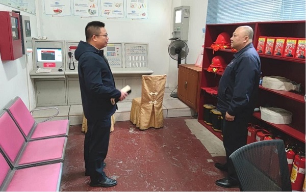 开展专项检查 “消防宣传月”期间,集团公司安全与应急管理部牵头深入各成员单位,针对管辖区域、外租场所深入进行火灾隐患排查整治,加强检查维护消防设施,做好重点领域消防安全风险防范。 ▲集团公司抽查消防物资储备情况 ▲对消防设备进行检查