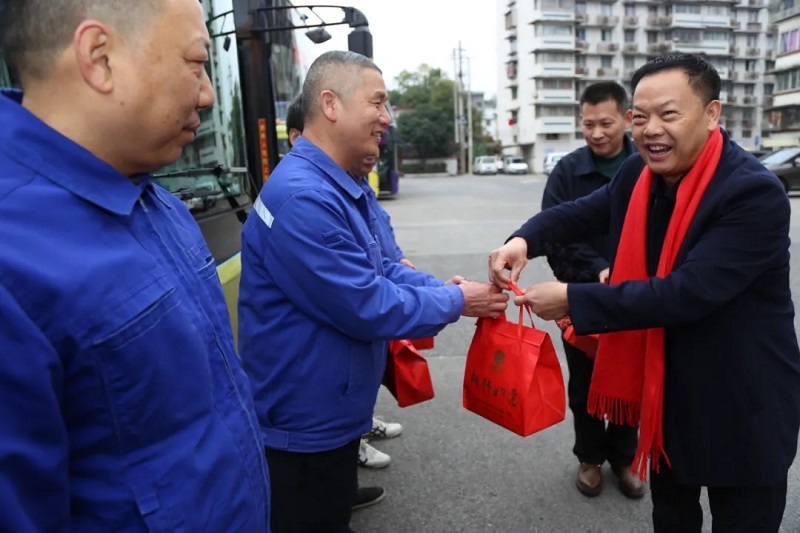 集团公司党委委员、副总裁唐虎来到阳朔旅游集散中心,慰问坚守岗位的一线职工,亲切询问了大家节日期间的工作安排和生活情况,对他们在万家团圆之际舍小家为大家的精神给予赞扬。慰问中,唐虎为职工们送上寓意平安与吉祥的苹果,祝福大家度过一个平安、祥和的春节。
