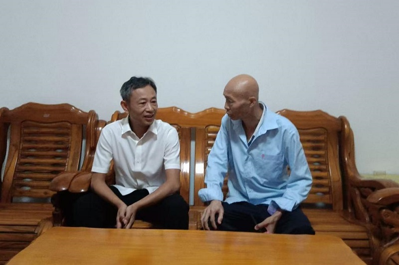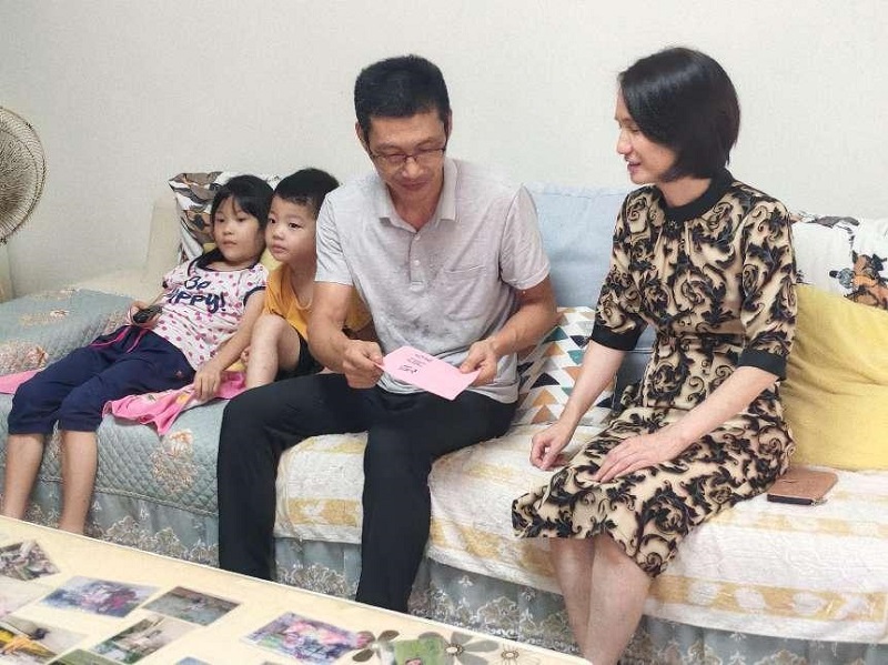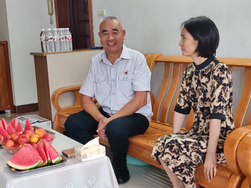 ▲陈静一行慰问党员胡天顺。黄雅琪/摄