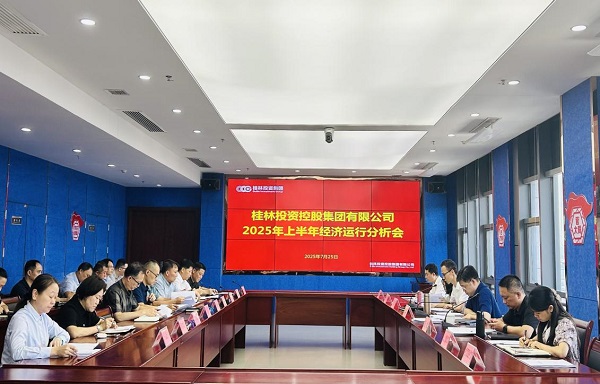 2025年7月25日,桂林投资集团召开上半年经济运行会议,会议总结上半年生产经营工作、分析研判当前形势挑战,并部署下一阶段重点工作。集团公司副董事长、总裁蒋东兵主持会议,集团公司各部室及成员单位主要负责人参加会议。