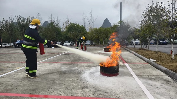 在全国第34个消防日来临之际,为深入贯彻落实习近平总书记“人民至上、生命至上”“统筹发展和安全”等关于安全生产重要指示精神,响应今年全国消防宣传月“全民消防、生命至上——安全用火用电”的主题,以实战化演练推动安全文化建设,提升全员应急能力,11月7日下午,桂林投资集团成功举办以“筑牢安全防线,实战锤炼精兵”为主题的消防应急演练大赛,集团公司党委副书记、工会主席于丹凤到场观摩比赛。