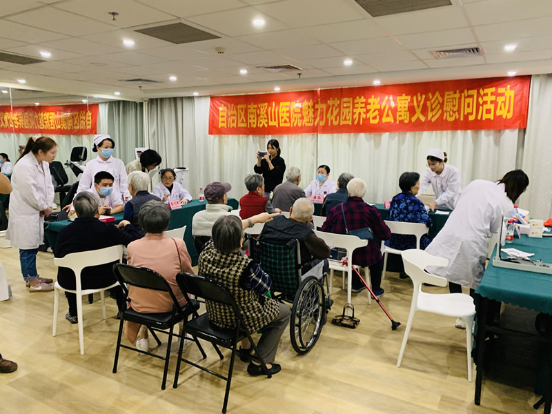 重阳节之际,自治区南溪山医院各党支部党员、神经内科等科室医护人员来到魅力花园养老公寓开展义诊慰问活动。