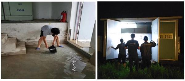 受洪水灾害影响,工作人员对九美桥污水泵站及根艺奇石污水泵站及时做了断电处理,24小时轮班值守,避免漏电二次伤害。