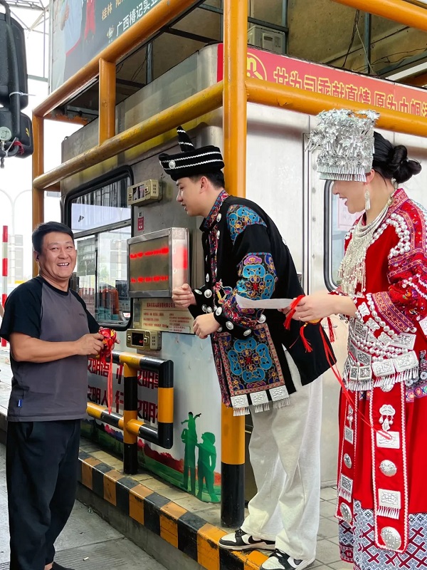 机场路、阳桂公司相关负责人介绍说,这次的活动以“服务+文化”双轮驱动,通过将民族元素融入收费服务全流程,把“交通节点”打造成“文化驿站”,让更多来桂游客感受我们广西的民族文化特色。