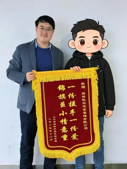 当日,低空运营公司在接到指令后迅速响应,15分钟内完成设备调试与人员集结,搭载高清热成像仪的无人机紧急升空。此时老人已走失近两小时且无通讯设备,复杂地形让地面搜救举步维艰。无人机升空后化身“空中鹰眼”,通过热成像技术穿透夜色与植被遮挡,精准捕捉生命体热源,实时回传画面至指挥中心,救援人员通过数据分析缩小搜索范围,在茫茫夜色中快速锁定走失老人。经检查,老人仅轻微疲惫,身体无碍。事后,老人家属专程到公司送上锦旗,紧握救援人员的手感激道:“当时天都黑透了,山里又那么冷,还好你们的无人机这么快就找到了人,不然真不敢想后果,太感谢你们了!”