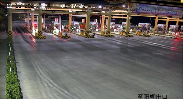 2025年12月15日凌晨1时48分,桂林投资集团阳桂公司雁山收费站2号收费车道突发异常,一名行为怪异的男子闯入,既干扰车辆正常通行,更潜藏安全隐患。