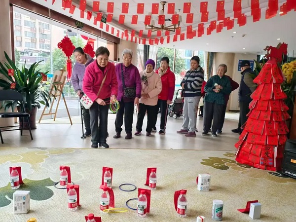 大年初六,公寓推出一站式文娱服务,特邀专业艺术团带来戏曲、老歌、民俗舞蹈等专场演出,工作人员贴心安排座位、准备饮用水,全程留意长者身体状态;演出之余的套圈游园会同样热闹,工作人员合理布置场地、加油鼓劲,成功套中的欢呼此起彼伏,轻松的互动既活动了长者筋骨,也增进了彼此情谊。
