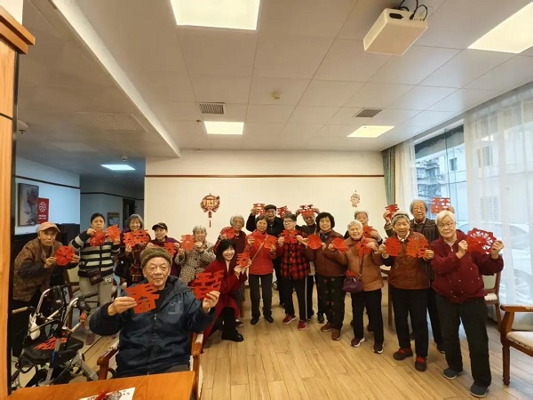 除夕当天,公寓将民俗体验与适老服务结合,开展福字拓印、门神彩绘、剪纸创作活动,工作人员全程协助指导、递工具整作品,还帮忙促成长者间的创作交流与手作互赠。长者们各展所长参与其中,在动手锻炼手眼协调能力的同时,也拉近了邻里距离,与手作合影的灿烂笑容,成为节日里的暖心风景。