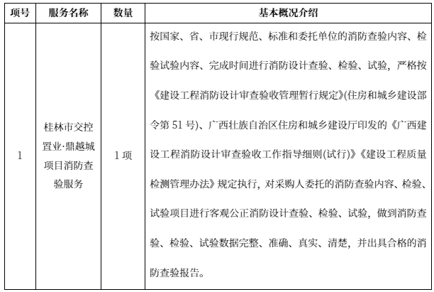 一、项目名称:桂林市交控置业·鼎越城项目消防查验服务
