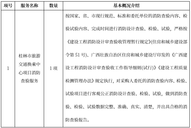 一、项目名称:桂林市旅游交通换乘中心项目消防查验服务