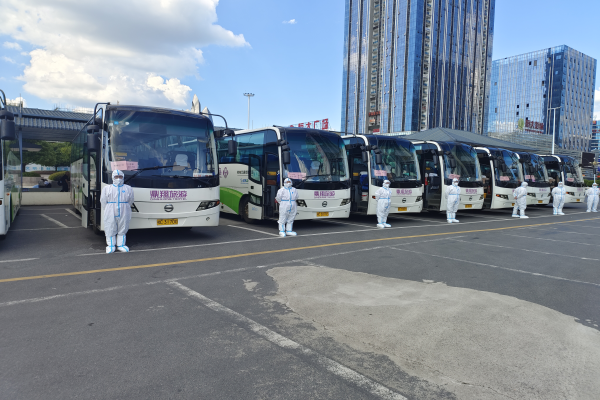 日前,700余名驰援北海的医务人员返回桂林。接到上级安排后,轨道集团鼎翔公司出动19辆旅游大巴,顺利将驰援北海医务人员从火车站转运至隔离酒店。
