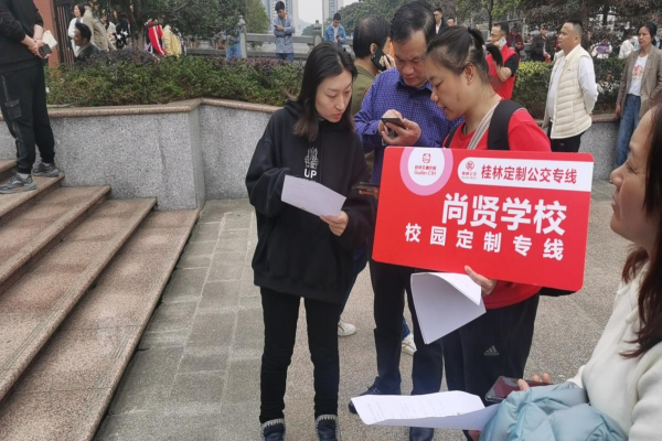 据了解,此次开通的尚贤学校校园定制公交专线,针对学生上下学时间安排发车,并由桂林公交始发站场站安排专人与学校进行对接,构建起学校与定制公交、定制公交与学生家长多层联系机制,确保为乘坐的学子们提供准点、安全、舒适的出行环境。