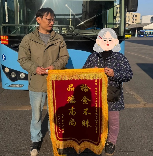 几天后,唐老师特意定制锦旗再次来到场站,向韦勇及桂林公交工作人员致以诚挚感谢。面对这份来自市民的肯定,场站负责人表示,将继续坚守为民服务初心,用点滴行动传递城市温暖正能量。