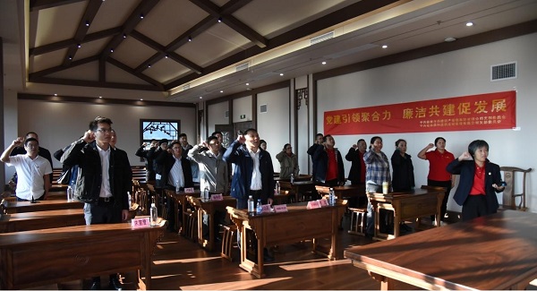 随后,两个党支部的党员干部们集中进行了廉洁宣誓活动。一句句铮铮誓言,彰显了党员干部们牢记树廉洁之心、行廉洁之事、做廉洁之人的决心。