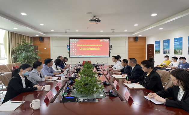 张德柱介绍了研究院的基本情况、人才队伍建设探索与创新、校企合作展望等方面情况,他讲到,学校药学院培养的大批优秀毕业生为企业的发展做出了突出贡献,盘龙集团在服务国家医药卫生建设的新征程中同样离不开学校的支持。张水平表示,高校以人才就业为契机进行访企拓岗,是促进毕业生高质量就业,实现校企双赢的一项重要举措,也帮助企业领先一步吸纳更多优秀人才。