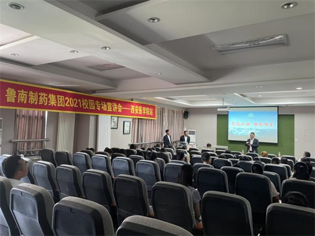 座谈会后,鲁南制药针对2021届毕业生作了主题为“奔赴山海,为你而来”的校园专场宣讲会,企业区域人力资源经理朱振青详细介绍了企业的发展、产品岗位需求及薪资待遇;陕西区域总监张云修分享了自己的励志发展故事,激励同学们在求职路上要勇敢挑战自己, 坚定信念终会守得云开见月明。鲁南制药本次校园行提供招聘岗位十余个,经过二轮现场面试,最终意向签约5人。