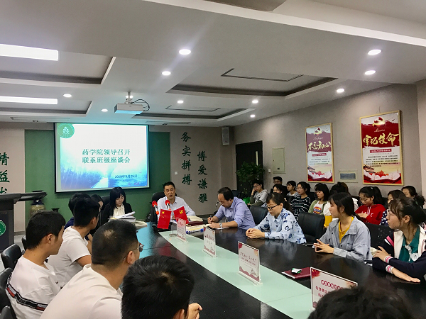 9月25日下午,药学院在立德楼会议室召开了院领导联系班级座谈会,药学院院长秦蓓、党总支副书记吕忠田、冯永辉、化学教研室主任兼药本1837班学业辅导员刘春叶教授、辅导员袁欣以及药本1837班全体同学参加了座谈会。会议由袁欣老师主持。