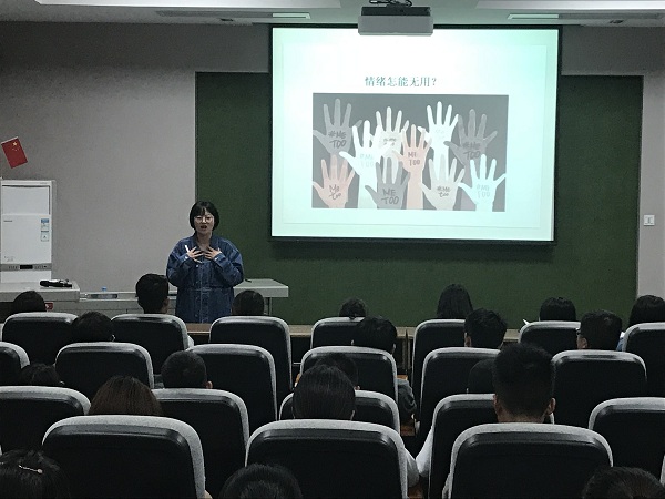 李娜老师用诙谐幽默又轻松愉悦的方式教会同学们生活中情绪的作用以及情绪给我们生活的影响,她通过现场小游戏的方式给大家讲述沟通的重要性,最后她教给大家一些日常生活中简单易行的排压举措。此外,李娜老师还给同学们分享了她自己很喜欢的心理学书籍《非暴力沟通》及著名心理学家森田正马的著作。
