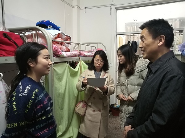 2019年2月28日晚19:30分,药学院党总支副书记吕忠田、学生科科长杨欣雨、校企合作办公室主任闫平走访了高新校区药学院实习生宿舍,了解药学院2019届毕业生实习情况、住宿情况和思想动态。
