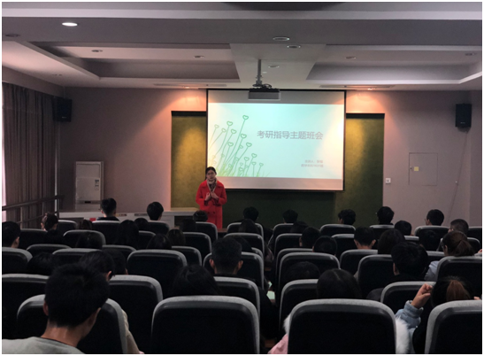 张韫老师首先对考研学校的选择、专业选择等学生提出的共性问题逐一进行解答,并结合自身经历为同学们指明了考试方向,接着就考研考试科目进行了分析,为同学们梳理了考研的时间。与此同时,着重谈到备考方法,她提醒同学们注意英语、专业课在研究生考试和未来科研期间的重要性,并详细说明英语的备考方案。在讲座的尾声,谈到学校导师选择问题,张老师提醒各位同学可以等初试成绩出来后,积极联系导师,同时,她还针对导师的选择、沟通等问题上结合自身经历提出了几点宝贵的建议。在整个讲座过程中,张老师开门见山的讲述风格、清晰的条理、时不时蹦出的“张氏”幽默,不仅舒缓了考研同学的压力,帮助了同学们增强自信心,同时有助于提高同学们对考研的进一步认识,赢得了同学们一致好评。