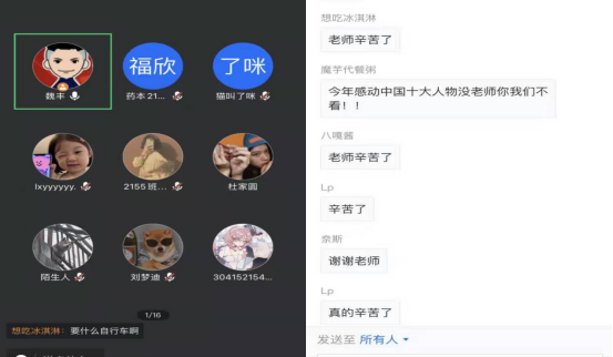 完成当天组织服务工作记录小结后,魏丰老师与所带班级学生进行线上会议,通过热点分享、互议互“槽”舒缓心理压力,带着同学们坚持阳光心态,鼓励大家在特殊时期团结一心、互相协作,打好疫情防控阻击战。