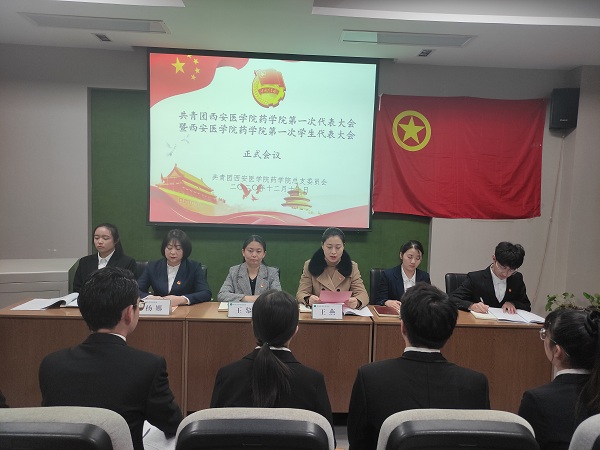 12月17日下午,共青团西安医学院药学院第一次代表大会暨西安医学院药学院第一次学生代表大会于我院学术报告厅顺利召开。校团委书记王燕,药学院党总支副书记王黎、学生科科长杨欣雨、团总支书记杨娜,陕西中医药大学药学院张岩丽老师以及药学院团学代表团体代表出席大会。