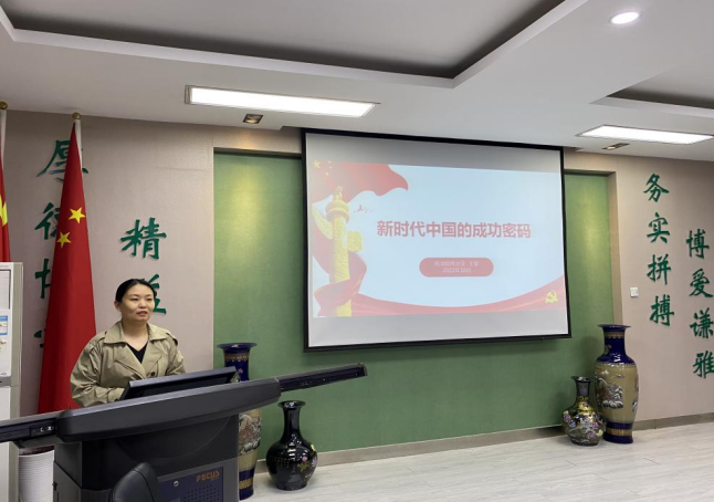 为深入贯彻学习党的二十大精神,进一步引导青年大学生不忘初心,牢记使命,坚定永远跟党走的信念,2022年10月26日,药学院党总支书记王黎以《新时代中国成功的密码》为主题给学生党支部的全体党员讲授了一场主旨鲜明、思想深刻的专题党课。