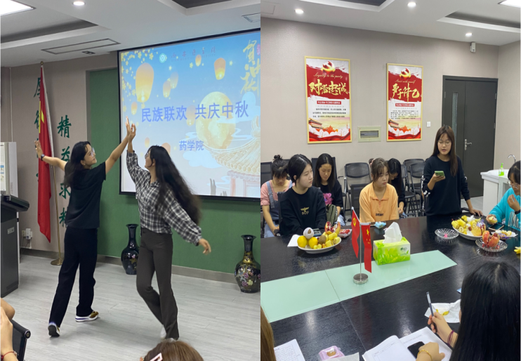 在国庆、中秋“双节”即将来临之际,为给各民族学子带来家的温暖和佳节关怀,9月18日,药学院在立德楼三层党员活动室举办了以“民族联欢 共庆中秋”为主题的民族团结一家亲联欢活动。药学院党总支副书记王黎、党总支统战委员/校企合作办公室主任闫平、党总支青年委员/学生科科长杨欣雨、学生第一党支部书记袁欣、新生辅导员赵理达、魏丰以及布依族、白族、维吾尔族、土家族、苗族、彝族等少数民族学生40余人聚一堂,共庆中秋佳节、共话民族团结,活动由少数民族学生工作专干程晨主持。