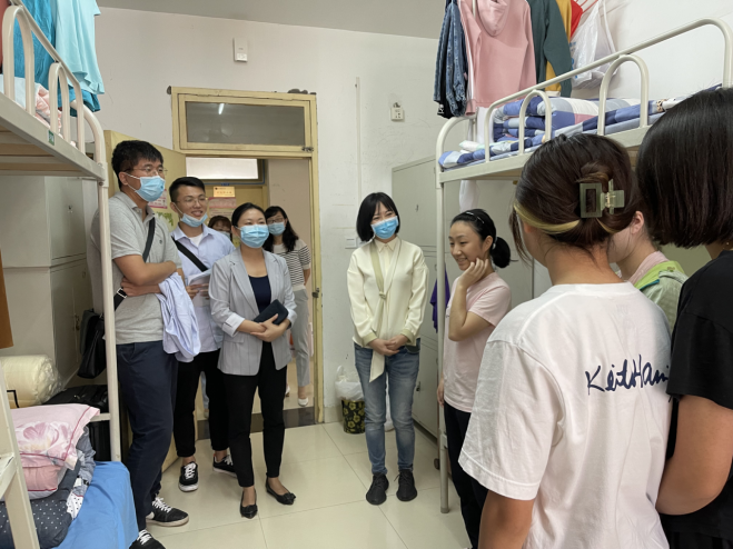 9月8日上午,药学院党政、学生党支部书记及新生辅导员一行走访了6号楼男生公寓和8号楼女生公寓,深入了解学生报到入住情况,并送去学校的关怀与温暖。走访过程中,每到一个宿舍,秦蓓院长与王黎副书记都与学生亲切交谈,关心学生对新环境的适应、生活条件以及对所学专业的了解等情况,通过和学生谈论家乡特色、兴趣爱好等话题拉近与学生的距离,畅通师生沟通渠道。整个交谈过程,气氛轻松愉悦,学生也放下拘束,交谈甚欢。走访过程中,药学院迎新团队也检查了新生寝室设施安全,叮嘱学生严格按照宿舍规定摆放个人物品,提醒用电安全、出行安全,做好防骗防盗、拒绝推销等相关工作。走访结束时,老师们对新同学们提出几点希望,希望大家及时调整状态,尽快融入大学生活,努力学习提升自身综合素质,培养发现问题、解决问题的能力,通过大学的四年历练奔赴更精彩的人生。(文/图 魏丰)