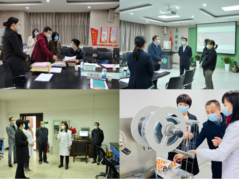 评估验收组现场查阅了相关创建材料、成果展示等,实地走访查看了创建单位的党建+业务融合阵地:党员活动室、药物制剂实训中心、药物分析测试中心,并与部分同志进行了深入交流。