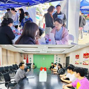 招聘会中,来校医药企业招聘负责人仔细询问毕业生的就业意向,对药学院2023届毕业生的整体素质与综合能力表示满意,希望同学们能多参与实践活动,不断积累经验、提升自我。前来应聘的毕业生与用人单位积极交流、自信面试。