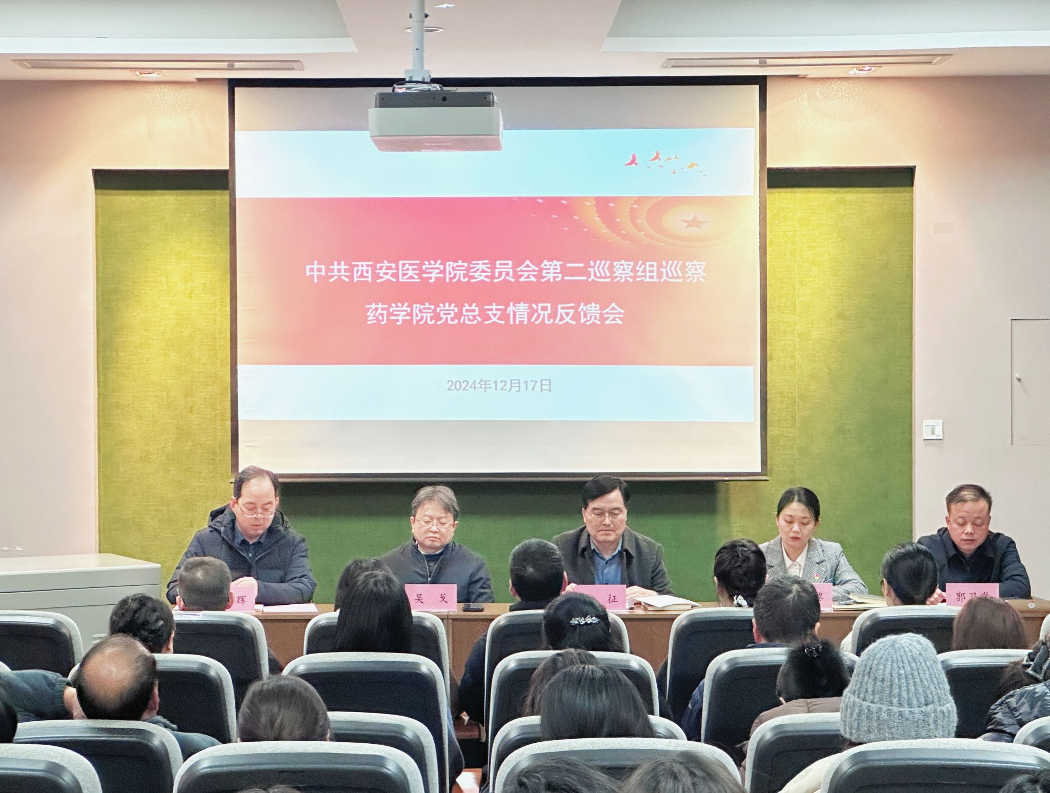 第二巡察组全体成员、药学院党总支领导班子及全体党员、教职工参加了会议。