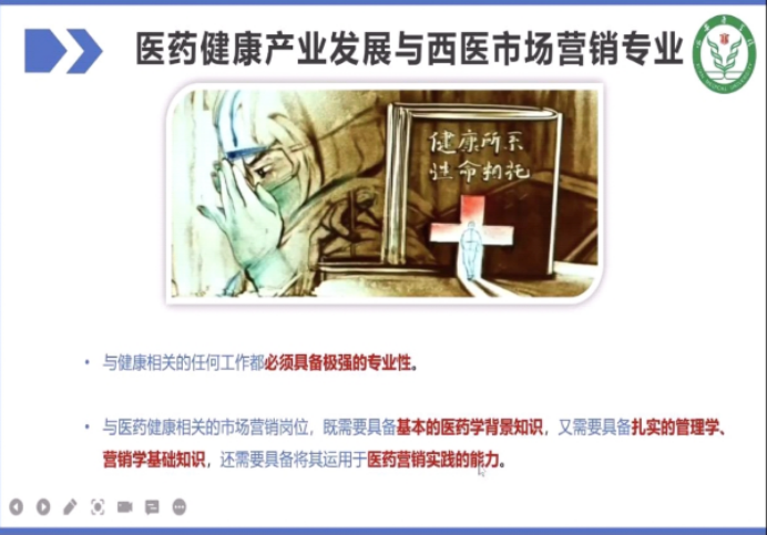 市场营销专业负责人曹璞副教授从市场营销专业简介、医药健康产业发展与西医市场营销专业特色及西医市场营销专业就业前景三个方面对2022级新生进行了详细的专业介绍,让新生对所学专业有了清晰、明确的认识。