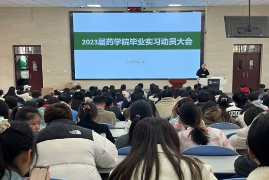 2023年2月23日下午,药学院在教学楼教一阶召开了2023届毕业生实习动员大会,药学院专业负责人、教研室主任、2019级辅导员以及2023届药学、中药学、市场营销专业毕业实习学生参加了会议,会议由药学院教学科科长邓文婷主持。