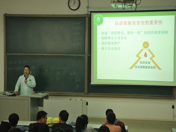 (药学院)为推进创建省级“平安校园”建设工作,加强实验室安全管理,确保实验室成为安全的学习、工作场所,10月20日,由分析测试实验中心主任张博副教授和化学实验中心主任范涛老师分别给药学院2016级各专业412名新生进行了实验室安全教育专题培训。