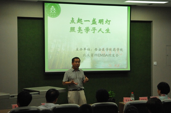 (药学院)2016年6月20日下午,由我校药学院与北大商帅EMBA校友会联合主办的“点起一盏明灯,照亮学子人生”走进大学生毕业季系列活动在药学院三楼会议室举行。西安医学院党委副书记、副院长杨帆应邀出席并讲话,药学院院长秦蓓、药学院党总支副书记吕忠田、18家医药企业领导及药学院2016届毕业生参加了此次活动。