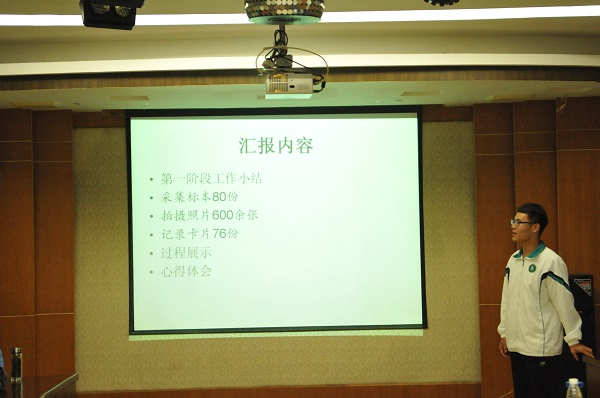 汇报会开始前首先观赏了陕西太白山国家级自然保护区管理局提供的纪录片《太白魂》,通过视频大家领略到了太白山动植物资源的丰富和大自然的奥秘;随后由刘强和张茜同学朗诵刘博炜同学创作的诗歌《太白颂》,表达了同学们对太白的爱和对秦岭的崇敬;接下来各组成员分别对六天以来的野外实习工作进行详细汇报,汇报的同学从植物的科属种及其特征等方面做了介绍。同学精彩的汇报得到了大家一致的好评。紧接着是激烈的药用植物学野外实习知识竞答,同学们积极抢答,争先恐后又一次把活动推向高潮。