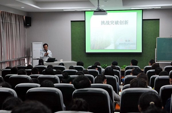 报告会上,张剑总经理进行了简单的自我介绍后通过案例分享及自身经验分别从挑战、突破、创新三个方面向学生们阐述了关于就业创业的成功条件:一是挑战需要定位准确、团结合作、守时守约、更需要规划人生,挑战自己,勇敢地迈出第一步;二是突破需要求变求新求异、需要告别自卑、考虑全面并制定计划;三是创新就是要走适合自己的路,走别人走过的路必将堵死自己的路。最后,张剑总经理谈了关于未来医药企业与医药现代化物流的发展之路,并欢迎我校学生在不久的将来进入天士力物流公司实习就业。