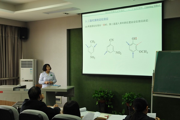 2015年11月18日,药学院在立德楼举行了青年教师基本功大赛选拔赛,本次参赛的成昭、张韫、杨阳等三位教师分别由化学、药物分析、天然药物化学教研室推荐。各位教师的教学设计科学合理、内容充实、条理清晰;教学方法运用灵活、重点突出;讲授中精炼的教学语言、精致的多媒体课件彰显出青年教师的聪明智慧与教学魅力,给评委老师们留下了较为深刻的印象。青年教师二十分钟的授课内容体现了完整而合理的教学设计思路,展示了一个完整的教学环节。教学基本功展示后,学校白惠民督导分别对三位教师的授课和教学设计进行了认真细致的点评,在肯定选手成绩的同时又提出宝贵的意见和建议;药学院对参赛教师提出希望,要求教研室指导青年教师继续改进参赛内容,预祝参加学校比赛的教师取得优异成绩!
