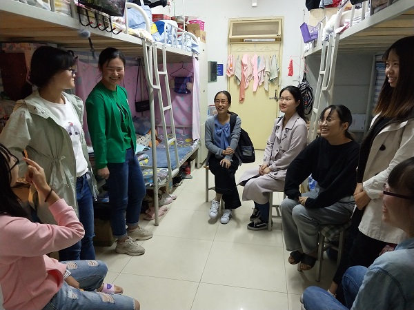 刘少静副教授与谭李玉实验员一组,前往8#322宿舍与结对帮扶的贫困学生进行了深入交流。了解学生最新的家庭情况和学生在校的学习生活情况,并在学业规划、就业去向和能力培养等方面给予了指导,鼓励学生积极开拓胸怀和视野,多与身边的同学和老师沟通,相互学习,靠自己的努力赢取美好的未来。