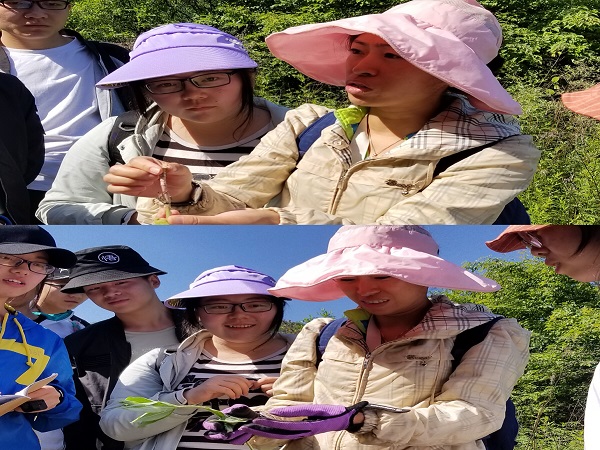 作为生药研究室的主任,张寒老师担负此次实习的所有师生的安全责任。在野外实践过程中,她深知安全大于一切,时刻提醒叮咛所有的实习师生的安全注意事项。在张老师亲切和善、细致专业的讲解中,总是给学生能营造出一个融洽和谐的学习氛围,让同学们在学习专业知识的同时,也能感受到学校和老师对大家的关爱。因此,我们总能看见她带教的小组成员勤于提问,乐于学习!