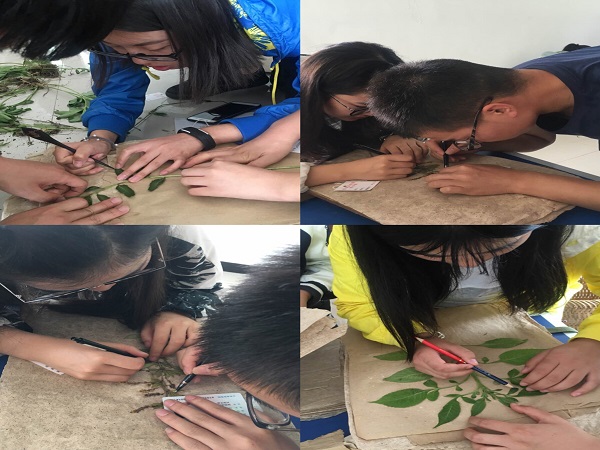 为防止当天的采集的标本干枯变形,因此每天采集到的植物标本当天必须进行压制。采集到的一部分植株枝叶稠密,在压制标本时,需要提前用笔、针等工具帮助摆放造型,这时就需要小组所有成员的分工合作。因此每天每一份标本压制,都是学生细致认真和团结协作的体现!