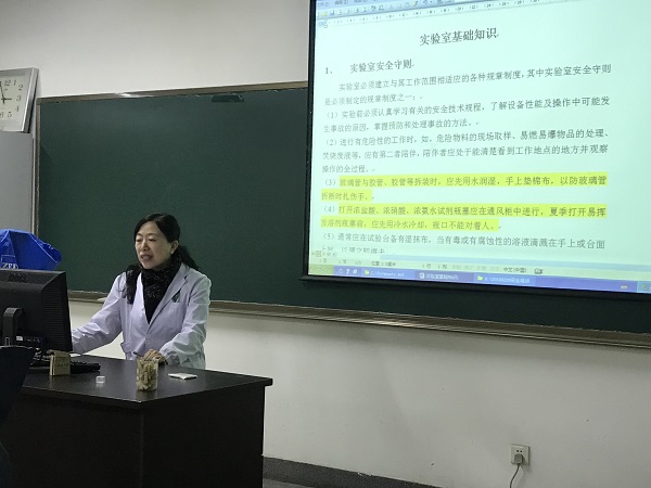 首先,魏彩霞主任介绍了2019年药学实验中心承担带教任务的基本情况,并详细讲解了《实验爆燃事故预防、处理、急救办法》和《实验室基础知识》,同时还介绍了毕业设计实验过程中危化品的日常使用和管理规定。最后,给大家现场讲解及示范洗眼器和紧急喷淋装置的操作使用要点,要求学生一定要遵守实验安全规程,做到防患于未然。本次培训,提高了师生的安全意识,为保障学生顺利、高效的完成毕业设计实验提供了一个很好的开端。(药学院 文/付丽娜 图/付丽娜)