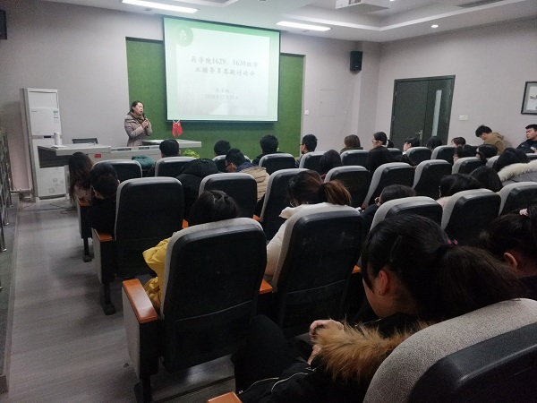2018年12月25日(周二),为积极响应药学院“双辅导员制”,切实落实该项政策,药学院生药学教研室张彦老师、郑梦迪老师于下午14:00在立德楼E-303学术报告厅召开以“考研及就业”为主题的答疑讨论会。