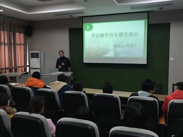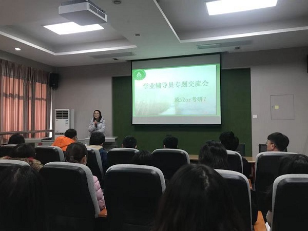 会议最后,由药营本科1614班辅导员夏玉老师讲话。她表示大家无论是选择就业还是考研,优异的学习成绩都是必备条件,希望大家继续努力学习,成为优秀的医药营销人才。 本次就业、考研专题交流会的成功召开,为即将踏入毕业年级的学生指明了方向,对药学院“双辅导员制”工作的展开及市场营销专业人才的培养有着重要的意义。(药学院 文/辛志虹 图/夏玉 )