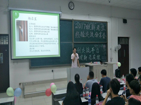 2017年9月20至21日,药学院在阶梯二教室举办了2017级新老生交流会。出席本次交流会的嘉宾来自我校各学生组织中优秀的学生,由他们为药学院全体新生答疑解惑。